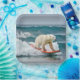 Polar Bären Surfen auf einem Surfbrett mit großen Meereswellen