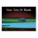 Ein Eisbär wandert in der langen Polarnacht durch das Eis; die Nordlichter in rot und grün leuchten in der Ferne. Fügen Sie Ihren eigenen Text hinzu.