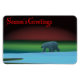 Ein Eisbär wandert in der langen Polarnacht durch das Eis; die Nordlichter in rot und grün leuchten in der Ferne. "Die Grüße der Jahreszeit" erscheint auch in rot.