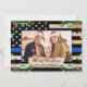 Mit dieser einzigartigen Thin Blue Line Police Christmas Card - American Flag in polizeilichen Flaggenfarben, modernes Schwarz und Blau mit holzigen Blätter und Beeren auf Holzfußboden. Personalisieren Sie mit Ihrem bevorzugten Foto und Namen Ihrer Familie. COPYRIGHT © 2020 Judy Burrows, Black Dog Art - Alle Rechte vorbehalten. Police Thin Blue Line American Flag Weihnachtskarte