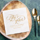 Serviettes d'anniversaire de mariage élégantes pour une célébration du 50e anniversaire de mariage avec un script de calligraphie tourbillonnant feuille d'or et vos noms dans une police élégante imprimée avec feuille d'or. Serviettes de 50e anniversaire de mariage blanches et dorées personnalisées avec vos noms, date mariage, et une citation estampillée en feuille d'or. Célébrez vos cinquante ans d'or ensemble dans le style avec ces serviettes glamour en feuille d'or personnalisées avec vos noms et date mariage.