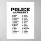Das Design "Police Alphabet From Adam to Zebra" ist ein einzigartiger und praktischer Verweis auf das phonetische Polizeialphabet, um die Kommunikationsklarheit zu erhöhen. Sie wird von der Strafverfolgung häufig eingesetzt, um Verwirrung bei der Rechtschreibung von Wörtern zu verringern, insbesondere über Telefon oder Radio. Das Erlernen dieses Alphabets erhöht Ihre Fähigkeit, in wichtigen Situationen klar zu kommunizieren.
