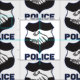 Eine Polizeibeamteaufgabe ist, die Öffentlichkeit, dieses Ausrüstungsbeschreibungen zu schützen und zu dienen ein Händedruck, der die Öffentlichkeit und die Polizeidienststelle mit POLIZEI-Text darunterliegend symbolisiert! Große Geschenke für Gesetzeshüter und Polizeidienststellegeldbeschaffer!
