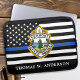 Thin Blue Line Police Department Laptop Ärmel - Amerikanische Flagge in Polizei Flag Farben, moderne schwarz und blau Design . Passen Sie sich mit Ihrem Abteilungslogo an und personalisieren Sie die Personalisierung mit dem Namen der Polizeibeamten. Diese personalisierte Laptop-Hülle für Strafverfolgungsbehörden ist ideal für Polizeidienste und Strafverfolgungsbehörden. COPYRIGHT © 2020 Judy Burrows, Black Dog Art - Alle Rechte vorbehalten. Polizeiabteilung Maßgeschneiderte Logo Rechtsdurchsetzung Notebook-Ärmel