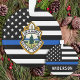 Thin Blue Line Police Department Weihnachtsschmuck - Amerikanische Flagge in Polizei Flag Farben, moderne schwarz und blau Design . Passen Sie sich mit Ihrem Abteilungslogo an und personalisieren Sie die Personalisierung mit dem Namen der Polizeibeamten. Dieses personalisierte Vollzugsschmuck eignet sich hervorragend für Polizeidienststellen und Strafverfolgungsbeamte, kleine Geschenke und Weihnachtsgeschenke für Polizeibeamte. Bestellen Sie diese Polizeischmuck Großhandel für die Polizeiakademie oder Polizeidienstgifte, polizeiliche Weihnachtsfeiern kleine Geschenke. COPYRIGHT © 2020 Judy Burrows, Black Dog Art - Alle Rechte vorbehalten. Polizeiabteilung Namensnenne Rechtsdurchsetzung