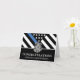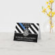 Dieses Design verfügt über eine Polizeiflagge mit schwarz-weißen Streifen und einen dünnen blauen Streifen. Ein großartiger Weg, um der neuen Polizei-Akademie zu gratulieren. Passen Sie den Namen des geschlossen Strafverfolgungsbeamten in Gold an. Feiern Sie diesen Meilenstein im Stil!