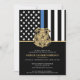 Ehre den Einsatz und die harte Arbeit eines neuen Strafverfolgungsbeamten mit dieser anpassbaren Einladung des Abschlusses. Dieses Design mit einem polizeilichen Abzeichen und einer Polizeifahne mit fett schwarz-weiß Streifen und einer stolzen blauen Linie symbolisiert Stärke, Service und Opfer. Die Einladung ist personalisiert mit dem Namen des Absolventen in Goldschrift, was es zu einem unvergesslichen Sake für Freunde, Familie und Kollegen macht. Ideal, um einen Abschluss, eine Werbeaktion oder einen Meilenstein in der Karriere eines zukünftigen Offiziers zu feiern. Laden Sie Ihre Gäste stilvoll ein und zeigen Sie Unterstützung für das neueste Mitglied der Thin Blue Line Community.