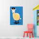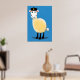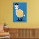Ein Schafpolizist mit einem Polizeihut auf blauem Hintergrund. Das ist eine künstlerische KI.