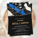 Einladungen zur Polizeischulung von Thin Blue Line . Feiern Sie Ihren neuen Abschluss in der Polizeiakademie und laden Sie Freunde und Familie zu Ihrem Polizeibeamten-Abschlussfeier mit dieser Thin Blue Line Flag Police Abschluss Einladung. USA amerikanische Flagge Design in Polizei Flag Farben, modern trendig Schwarz-weiß und blau mit goldenen Saitenleuchten Design. Die Einladung des Polizeibeamten zum Abschluss ist auch ideal für Einladungen in Polizeigewahrsam und für Personalisierungen. Sehen Sie sich unsere Kollektion an, um die Geschenke der Polizei-Abschluss, die Vorzüge der Polizeiakademie und die Vorräte zu finden. COPYRIGHT © 2021 Judy Burrows, Black Dog Art - Alle Rechte vorbehalten. Einladung des Polizeichefs Abschluss Thin Blue Line
