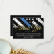 Dieses Design verfügt über eine Polizeiflagge mit schwarz-weißen Streifen und einen dünnen blauen Streifen. Diese Karte ist ideal, um allen Gästen, die das Party des pensionierten Strafverfolgungsbeamten, Sheriffs, Kapitäns oder Chefs des Ruhestands besucht haben, ein Dankeschön zu senden.