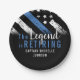 Dieses Design verfügt über eine Polizeiflagge mit schwarz-weißen Streifen und einen dünnen blauen Streifen. Der Text "The Legend is Retiring" liegt über dem anpassbaren Namen des pensionierenden Strafverfolgungsbeamten, Sheriffs, Kapitäns oder Chefs. Feiern Sie diesen Meilenstein im Stil!