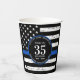 Thin Blue Line Police Retirement Paper Cups - US-amerikanische Flagge Design in Polizei Flag Farben. Diese personalisierten Papiertücher der Polizei sind perfekt, um Ihren pensionierten Strafverfolgungsbeamten, die Dekoration des Party der Polizei in den Ruhestand, das Party der Strafverfolgungsbehörden in den Ruhestand zu feiern. Personalisieren Sie diese Party-Servietten der Polizei mit Polizeibeamten, Name , Dienstjahre, Dienstjahre und Nachricht. Perfekt für alle Party der Strafverfolgung und das Party der Polizeiverrentung. COPYRIGHT © 2020 Judy Burrows, Black Dog Art - Alle Rechte vorbehalten. Polizeiliche Altersversorgung Party Strafverfolgung Blue Line Paper Cups