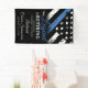 Dieses Design verfügt über eine Polizeiflagge mit schwarz-weißen Streifen und einen dünnen blauen Streifen. Der Text "The Legend is Retiring" liegt über dem anpassbaren Namen des pensionierenden Strafverfolgungsbeamten, Sheriffs, Kapitäns oder Chefs. Feiern Sie diesen Meilenstein im Stil!