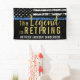 Dieses Design verfügt über eine Polizeiflagge mit schwarz-weißen Streifen und einen dünnen blauen Streifen. Der Text "The Legend is Retiring" in Gold liegt über dem anpassbaren Namen des pensionierenden Strafverfolgungsbeamten, Sheriffs, Kapitäns oder Chefs. Feiern Sie diesen Meilenstein im Stil!