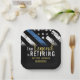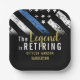 Dieses Design verfügt über eine Polizeiflagge mit schwarz-weißen Streifen und einen dünnen blauen Streifen. Der Text "The Legend is Retiring" in Gold liegt über dem anpassbaren Namen des pensionierenden Strafverfolgungsbeamten, Sheriffs, Kapitäns oder Chefs. Feiern Sie diesen Meilenstein im Stil!
