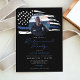 Diese Ruhestandsflagge zeichnet sich durch eine gebeutelte Aquarellfarbe und eine schlichte, neutrale Party Einladung aus. Diese Einladung kann genutzt werden, um die erste Reaktion der Polizei sowie das Marine- oder Luftwaffenpersonal zu feiern. Fügen Sie der Rückseite ein Foto für eine persönliche Touch hinzu.