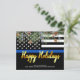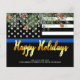 Senden Sie frohe Weihnachtsgrüße an Freunde, Familie, Kollegen von Strafverfolgungsbehörden und Ihre Gemeinde mit dieser einzigartigen Thin Blue Line Police Frohe Weihnachtskarte - American Flag in polizeilichen Flaggen Farben, modern schwarz und blau mit heiligen Blätter und Beeren und eleganten goldenen Drehbuch. Personalisieren Sie Ihre Nachricht und Ihren Familiennamen oder Ihre Polizeiabteilung. Diese Weihnachtskarten der Polizei sind perfekt für Polizei- und Strafverfolgungsfamilien sowie Polizeidienststellen. COPYRIGHT © 2020 Judy Burrows, Black Dog Art - Alle Rechte vorbehalten. Polizeiliche Weihnachtskarten - Strafverfolgung