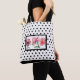 Schwarz-Weiß-Polka-Punkt mit gerahmten Blume machen dies zu einer klassischen Tasche.