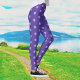 Ladys Leggings in einem Lila Polka Dot Muster. Helle lila oder lila Punkte gegen eine dunkllila Grundfarbe.