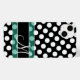 Ein schwarz-weißes Polka-Punktmuster mit einem Platz für Ihr Monogramm. Es ist mit einem aquamarinen grünen Streifen versehen, der für ein modernes, sauberes Design für jede Frau sorgt.