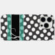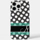 Ein klassisches schwarz-weißes Polka-Punktmuster mit einem Platz für Ihr Monogramm. Es ist mit einem aquamarinen grünen Streifen versehen, der für ein modernes, sauberes Design für jede Frau sorgt.