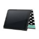 Stilvolle iPad Air Folio Gehäuse mit eingebautem Ständer aus schwarz-weißem Polka Punkt. Ein Minz-grünes Band, das an der rechten Vorderkante entlang läuft und eine dekorative Minz-grüne Scheibe, an der Mitte, hat ein schwarzes Monogramm mit einem Buchstaben, das für die Personalisierung bereit ist. Eine großartige personalisierte Geschenkidee.