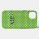 Polka dots Case-Mate Phone Case Apple iPhone 13 kaum dort. Elegante apfelgrüne Punkte Muster-Design mit individuellem Monogramm. Personalisierte Telefonabdeckung mit Initialen. Trendy Geburtstag oder Weihnachten Geschenk Idee. Auch für ältere Modelle und andere Marken erhältlich. Anpassbare Farben.