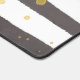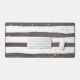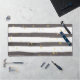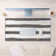 Tapis de bureau rayé gris et blanc avec taches jaunes.
