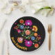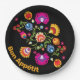 Einzigartige Folklorekomposition mit rosa und gelben Blumen, inspiriert von der Volkskunst Wycinanki aus Lowicz. Niedlich als Geschenk für volkstümliche Menschen. Papierplatte mit polierter Folklore, anpassbarer Text.