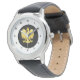 Uhr, Vintage Männeruhr mit schwarzem Lederarmband
