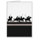 Illustration en silhouette noire et blanche des joueurs de polo sur leurs chevaux, mallets balançoires