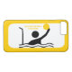 Wasserpolo-Spieler schwarze Silhouette angepasste iPhone 7 Gehäuse-Design mit einem minimalistischen Piktogramm-Symbol einer schwarzen Silhouette eines Wasserballspielers halten seinen Ball vor dem Tor und Ihr Text auf weißem Hintergrund mit gelbem Rand.