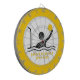 Wasserpolo-Spieler schwarze Silhouette Dartboard mit einem minimalistischen Piktogramm-Symbol einer schwarzen Silhouette eines Wasserballspielers, der seinen Ball vor dem Tor hält, und Ihr Text auf weißem Hintergrund mit gelbem Rand. Das perfekte Geschenk für den Wasserpolo-Athleten oder Liebhaber in Ihrem Leben.
