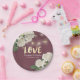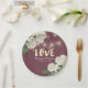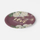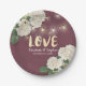 Moderne Polterabend Paper Plate Vorlagen - Elegante weiße, hübsche Hydrangea-Blume und String Lights auf Burgundy Red Background. Ein perfektes Design für Ihren großen Tag! Alle Textstile, Farben, Größen können an Ihre Bedürfnisse angepasst werden.
