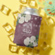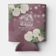 Polterabend Can Cooler / koozies Vorlagen - Elegantes Script, Mason Jars, Hydrangea Blume und String Lights auf Burgundy Red Floral Linen Hintergrund. Ein perfektes Design für Ihren großen Tag. Alle Textstile, Farben, Größen können an Ihre Bedürfnisse angepasst werden!