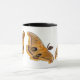 Diese Tasse kennzeichnet drei fabelhafte Polyphemus Motten (Antheraea polyphemus). Ein enormer Tan farbiges Geschöpf, mit einer Spannweite von 6 Zoll, die bemerkenswerteste Eigenschaft dieser fantastischen Motte ist die großen, dunklen eyespots auf seinen zwei hindwings. Die Augenstellen sind, wo sie seinen Namen - vom griechischen Mythos der Zyklope Polyphemus erhält.