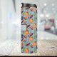 Dieser Granatapfel, Orange und Farn thermische Tumbler weist ein sich wiederholendes Muster auf, ähnlich wie die britischen 1800 Vintagen Textilien. Die Retrofarben sind orange, pflaumenfarben und grün, auf einem staubblauen Hintergrund. Dieser Schuster soll mit Ihrem Namen oder einem anderen gewünschten Text personalisiert werden. Geben Sie den gewollt Text im Bereich Personalisieren ein.