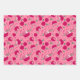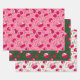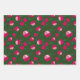 Wrapping Paper mit modernen, handgezeichnet, verstreuten tiefrosa / magenta Granatapfelaten und Samen. Es besteht aus drei Blättern mit dem gleichen Muster mit unterschiedlichem Hintergrund: creme, dunkelgrün und warm rosa. Geeignet für den Alltag oder die Weihnachts- / Feiertage / Wintersaison.