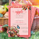 Voici notre enchanteresse Invitation Baby shower dans les couleurs rose, rouge et blanc. Un baby shower à thème fruité chic avec des feuilles rose, rouge et vert aquarelle, une corbeille de pommes à l'avant avec des détails de baby shower modifiables, et plaid sur l'arrière de la carte pour la célébration inspirée du verger. script, et calligraphie élégante. #applebabyshower #appleofoureyebabyshower #applethemebabyshower