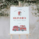 Sympa pompier thème fête d'anniversaire signe de bienvenue avec un camion de pompier.