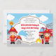 Jolie invitation partagée pour jumeaux / frères et soeurs, en double / thème duo : pompier avec mignon garçon & fille.
