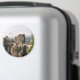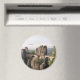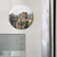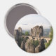 Magnet photo souvenir rond du pont Bastei (Bastei Brücke) en pierre au-dessus de l'Elbe, reliant les formations rocheuses emblématiques des monts Elbe Sandstone près de Dresde dans le parc national Saxon Switzerland (Sächsische Schweiz) en Allemagne de l'Est.