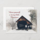 Belle photo du pont couvert de Woodstock, VT orne cette carte festive de Noël.
