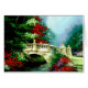 Peinture d'un jardin de parc et d'un pont en pierre au-dessus de l'eau.