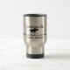 Reise-Tasse des rostfreien Stahls besonders angefertigt mit dem Pony Expresso Logo, der Umbaulinie und der Stadt