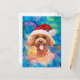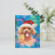 Poodle Breed Dog Weihnachten hat eine Aquarellfarbe eines Poodle mit einem roten Weihnachtshut, einem roten Weihnachtskragen und einer galaxischen Wasserfarbe.