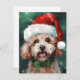 Buntes und fröhliches Weihnachtsdesign mit einem Poodle in einer Weihnachtsmannmütze.