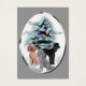 Ein Schwarz, ein Silber und ein Aprikosenpoodle posieren vor einem Weihnachtsbaum aus dem Wald. Wunderbare Geschenke.