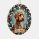 A beautiful, ultra-detailed Christmas ornament design featuring a realistic portrait of the breed centered within a soft, festive winter frame. This elegant design includes pine branches, red berries, and snowflakes against a snowy backdrop, illuminated by warm holiday lighting. The balanced, round composition includes clear space below the dog for customization.