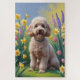 Ein fröhlicher Hund sitzt friedlich auf üppig grünem Gras, umgeben von bunten Frühlingsblüten unter einem weichen blauen Himmel. Dieses digitale Ölgemälde erfasst einen ruhigen Moment mit ausdrucksvollen Pinselstrichen, warmen Farben und einem Gefühl sanfter Freude.